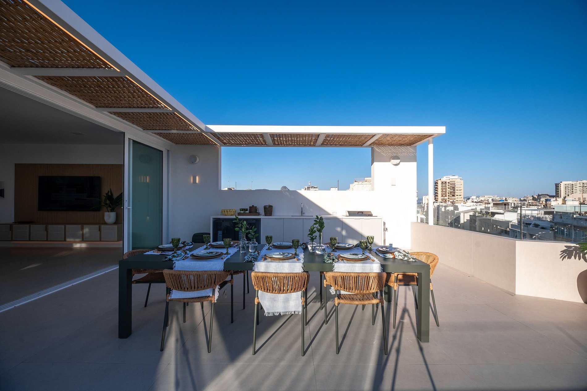 Every detail was designed for an impeccable stay, including premium bed linen, Buddemeyer Hotel Collection oversized towels, Granado amenities, iron and ironing board, steamer, baby crib, baby bathtub and high chair, washer-dryer, double-door refrigerator, split air-conditioning in all bedrooms, Smart TVs in the living rooms on both floors, and a complete set of tableware.