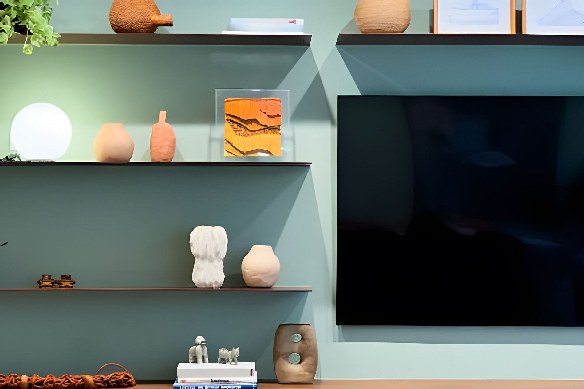 Spacious living room with TV and integrated areas