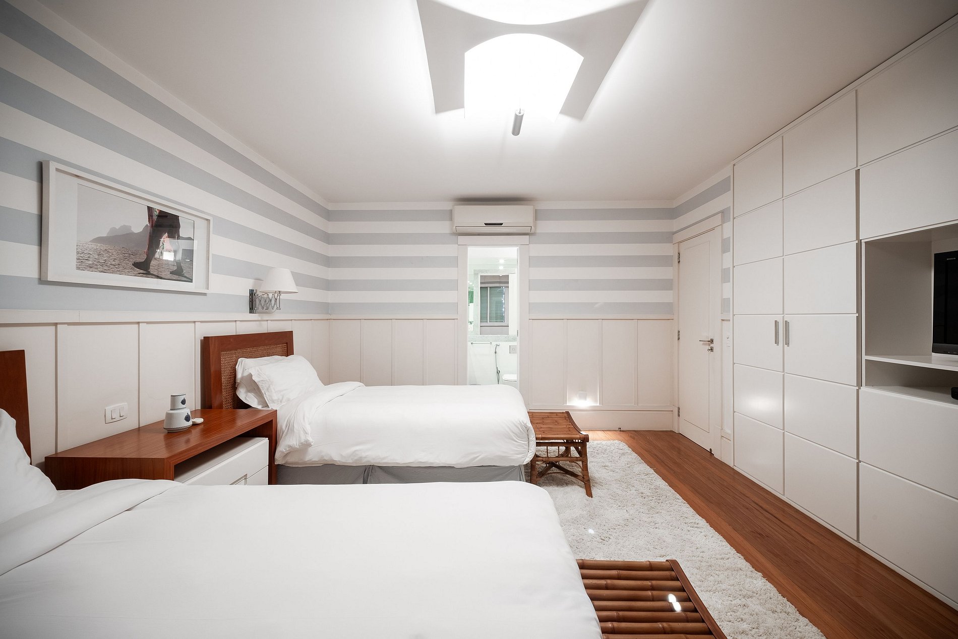 • Air-conditioned suites with split units, wardrobes, Smart TVs, and amazing natural light