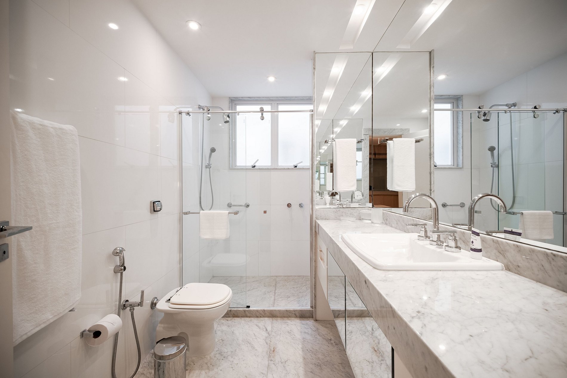 This spacious, newly renovated, and elegantly decorated apartment is located on the iconic Avenida Atlântica, offering a breathtaking ocean view. With 250 m² of comfort, it features 3 suites (one of which can be configured with a king bed or two singles), 1 half bathroom, plus an additional service bedroom and bathroom.