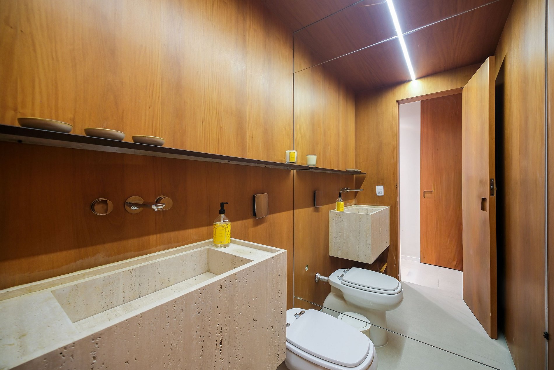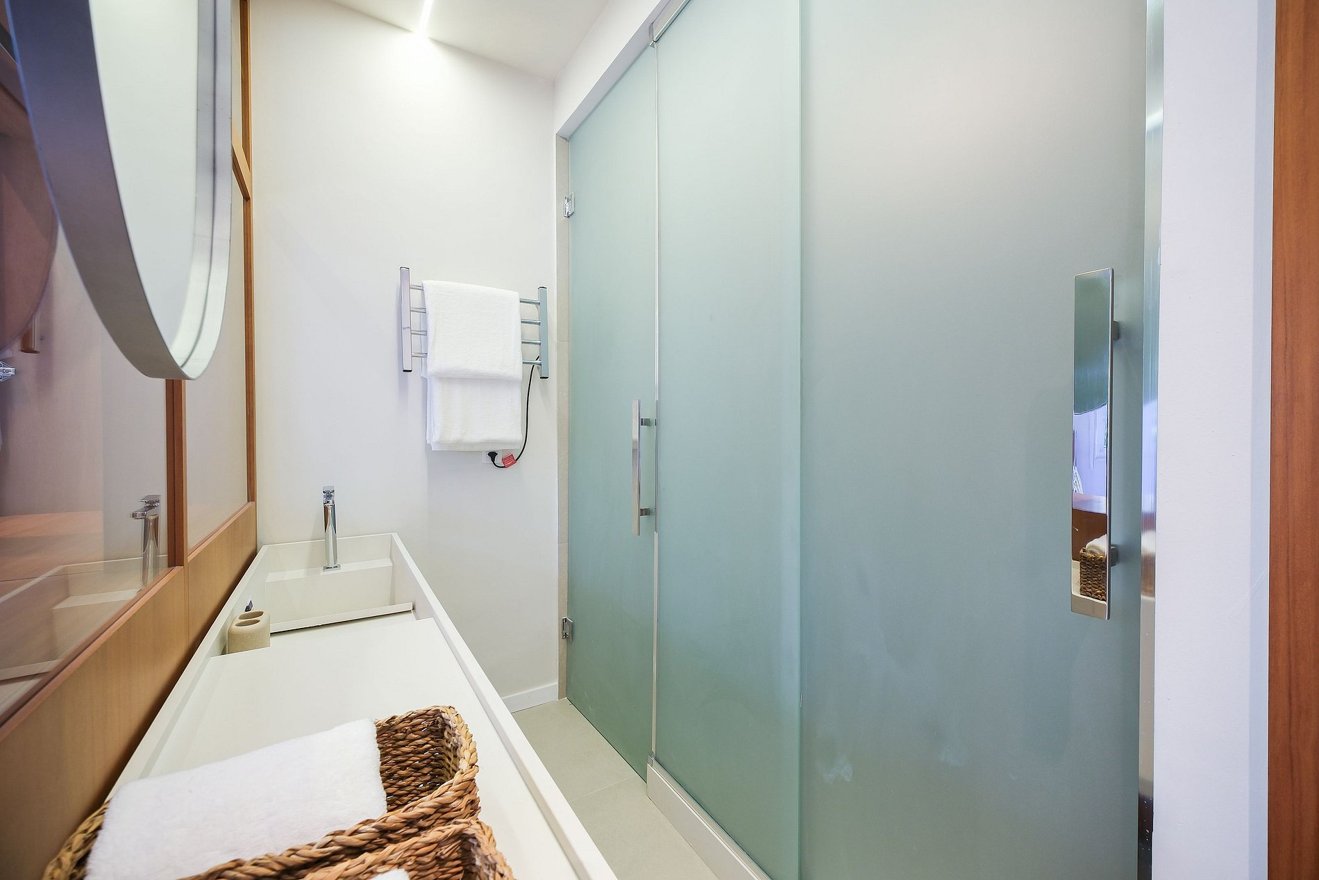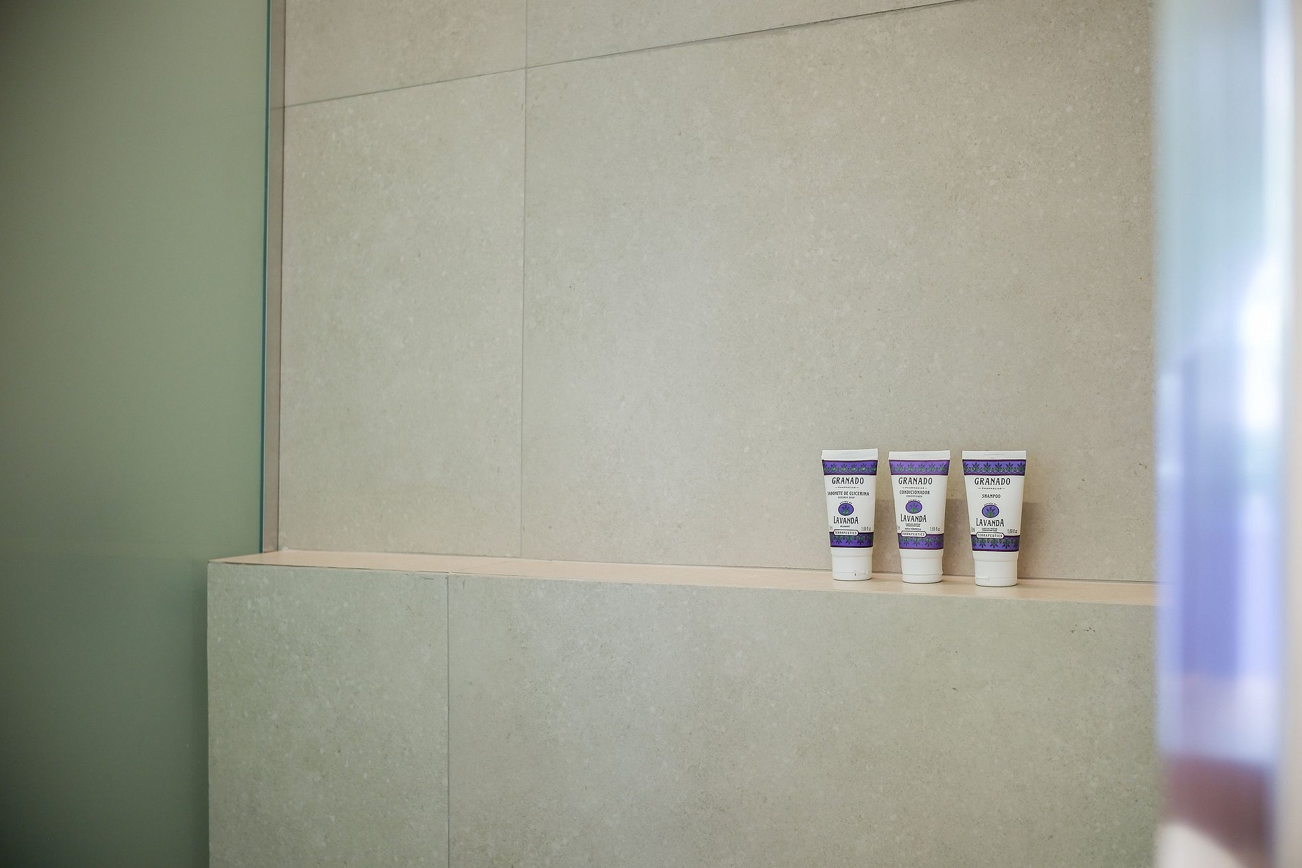 • Banheiro com toalhas Buddemeyer tamanho banhão, secador de cabelo e amenities da Granado;