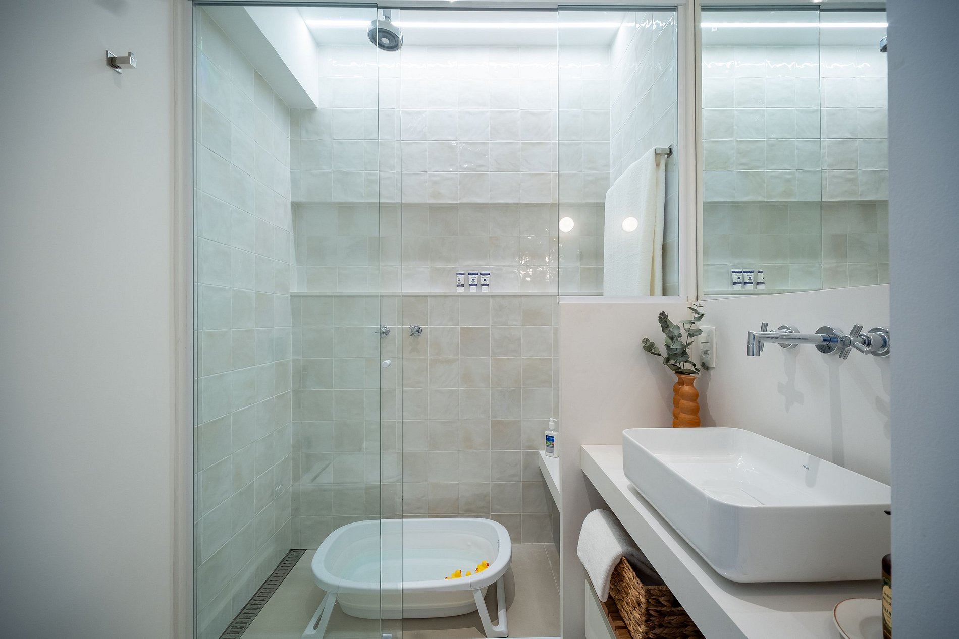 • Itens baby-friendly: berço portátil, banheira e cadeira de alimentação para os pequenos hóspedes;
