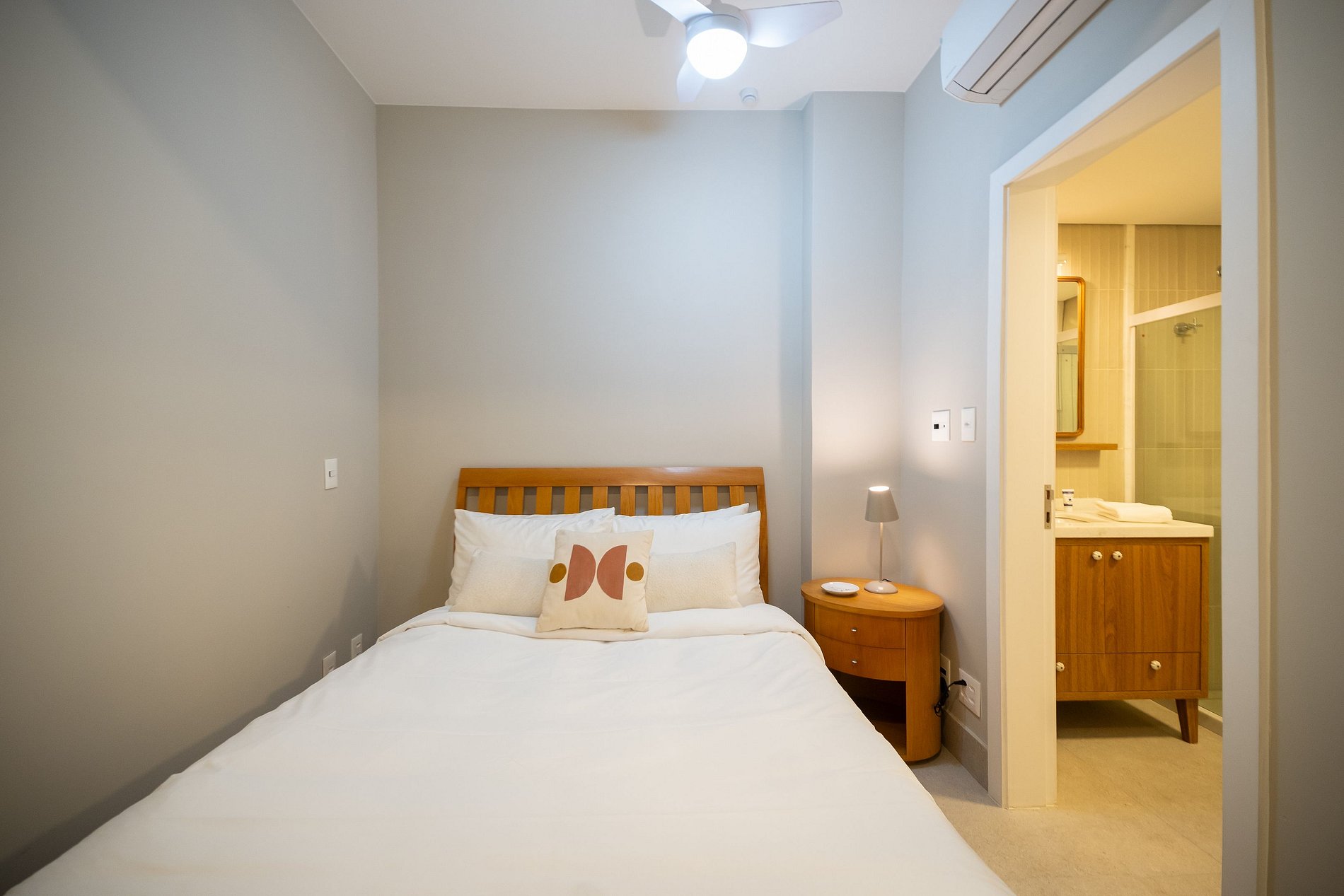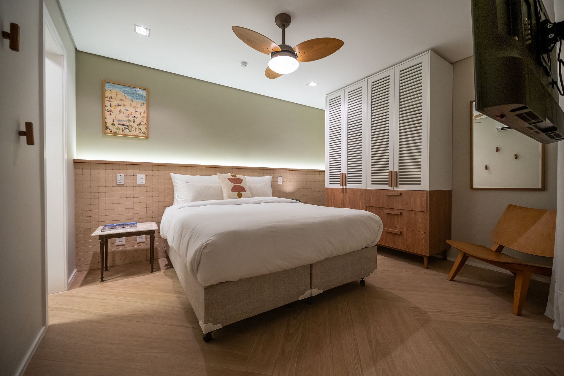 • Suítes com ar condicionado split, armários ou cômoda e blackout