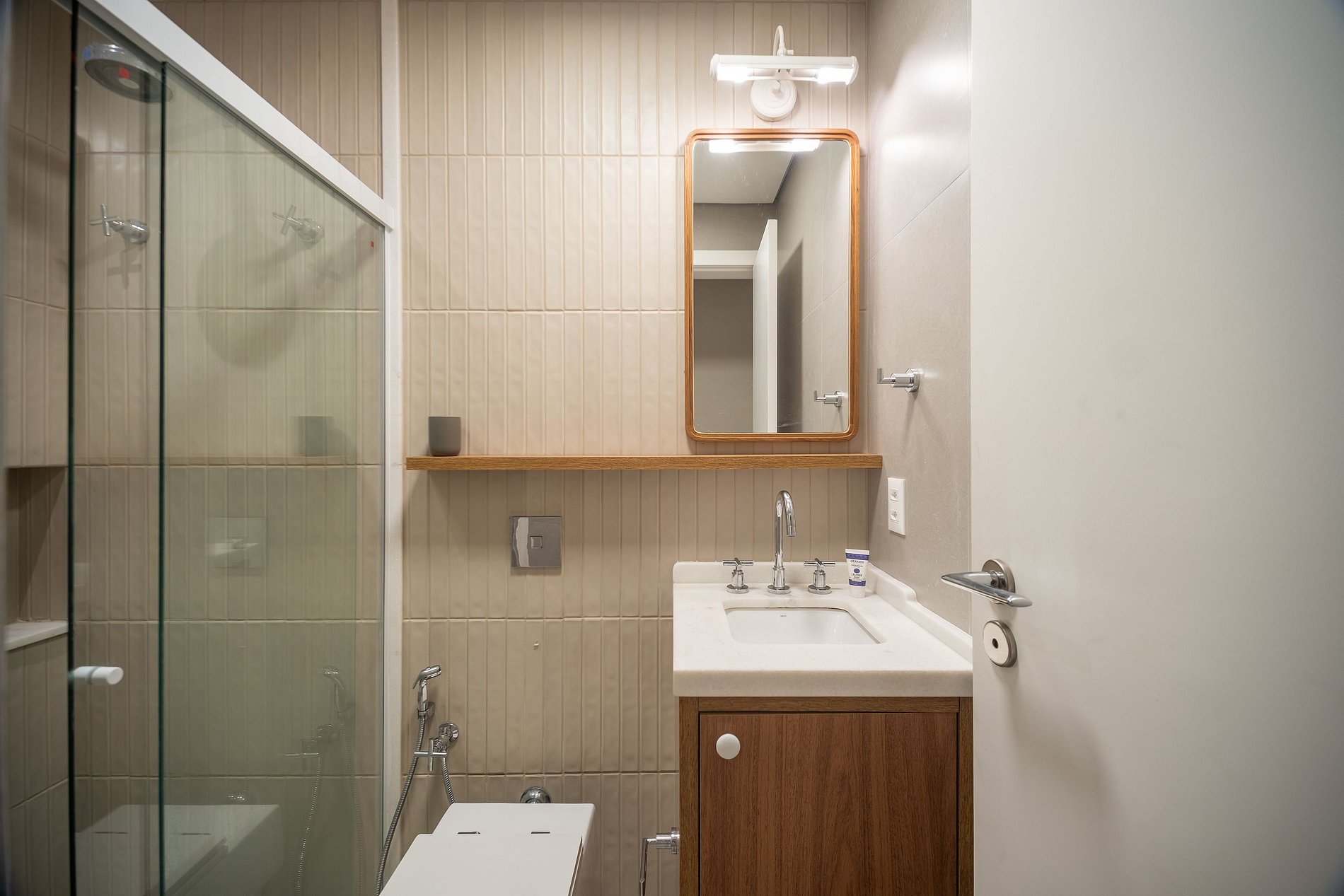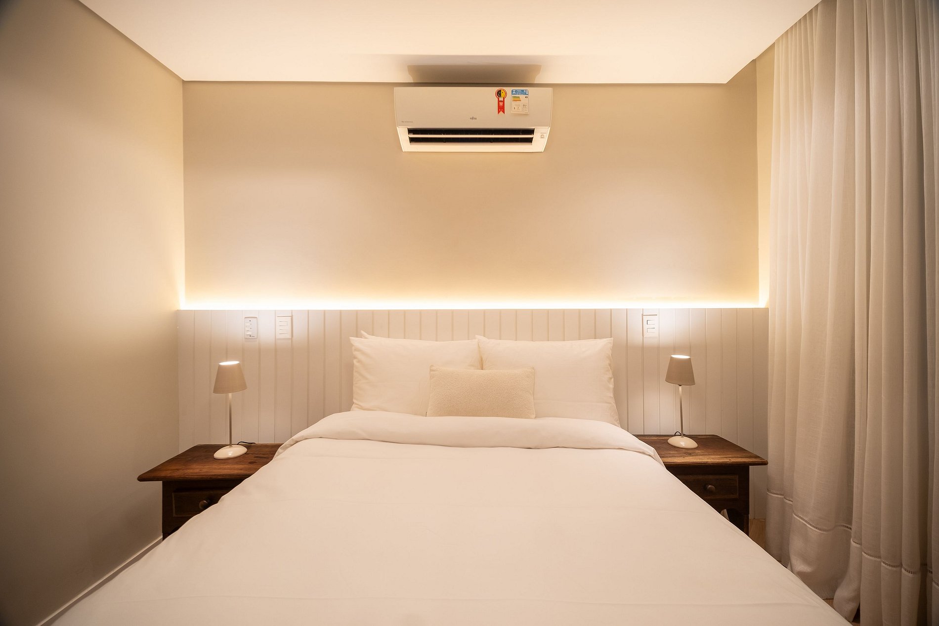 Cada detalhe foi pensado para proporcionar uma estadia impecável: enxoval premium com lençóis e edredons de alto padrão, toalhas Buddemeyer tamanho banhão, amenities Granado, tábua e ferro de passar, steamer, berço, banheira e cadeirinha para bebê, máquina lava e seca, geladeira, ar-condicionado split e smart TVs, além de jogo de louças completo.