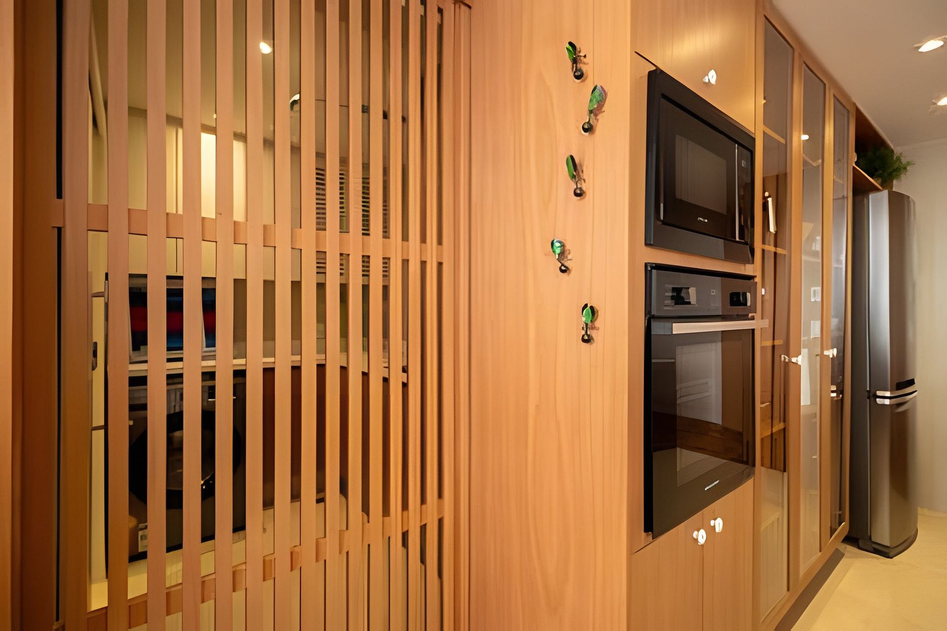 O apartamento conta com uma ampla sala com janela acima da copa das árvores e muita luz natural. A sala de jantar é integrada com a sala de jantar e com a cozinha que, além de ser é completa, ainda possui uma extensa lista de itens essenciais para o dia a dia do hóspede. A lavanderia possui varal, máquina lava e seca, steamer e bastante espaço. Possui três banheiros completos, sendo dois sociais e um na suíte. A suíte conta com uma cama de casal, TV, blackout, armário, espaço para trabalho/estudo e enxoval com muito conforto. O segundo quarto, com o mesmo conforto, pode ser arrumado com duas camas de solteiro ou uma no tamanho king. O terceiro quarto conta com uma confortável cama queen, armário, TV e blackout. Aparelhos de ar condicionado split estão presentes na sala e quartos. Muito conforto, sofisticação e elegância são as palavras que melhor representam o apartamento. Ainda é possível acomodar crianças em berços.
